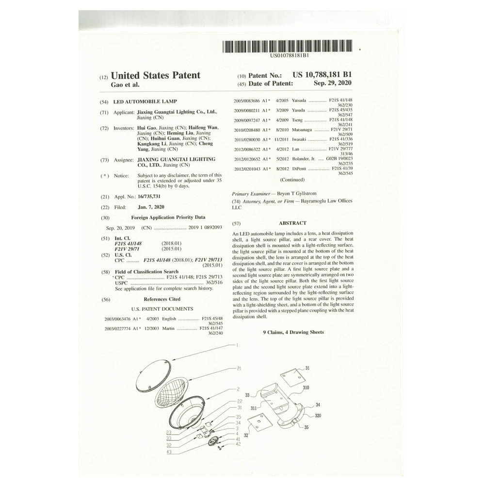 美利堅看到LED 小汽車燈-US10788181B1